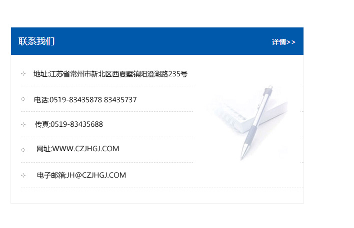 地址:常州市新北區友邦商務大廈1幢16、17層  電話:0519-85101652  傳真:0519-85112595  郵編:213022  網址:www_cz-jiayue_cn.jiean-cm.com  郵箱:xiajifengaa@163.com